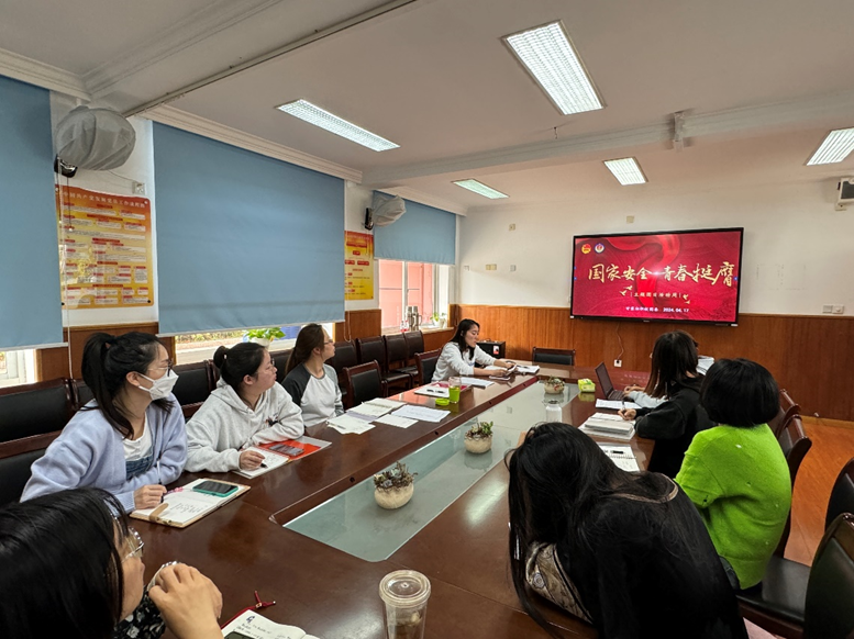 会后,全体团员青年结合学习内容、立足岗位,围绕维护国家安全展开了热烈的讨论。团委副书记唐文婷:”作为团员和教师,我们要积极践行国家安全理念,为维护国家安全稳定贡献自己的力量,让学生在我们的引领下,成为爱国、勇敢、有担当的新时代青年。”沈文云老师:“作为青年,我们不仅要提升国家安全意识,更要有能力辨识潜在威胁,敢于发声,勇于行动,真正做到“青春挺膺”,在维护国家安全的斗争中发挥生力军作用。”王诗叶:“国家安全是大家的责任,作为教师的我更应该通过教育传承这一理念,引导学生理解和关心国家安全,共同为维护国家安全贡献力量。青年应当积极行动起来,通过实际行动保护国家安全,为国家的繁荣稳定贡献自己的力量。”