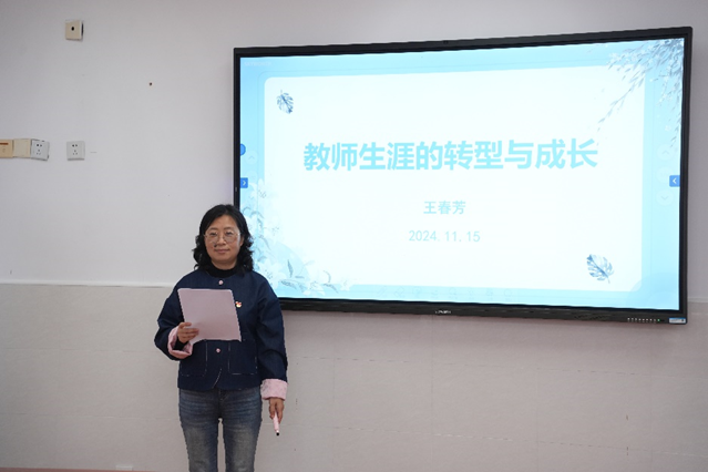 拥有30年教龄的党员教师王春芳老师,为团员青年教师带来了题为《教师生涯的转型和成长》的分享。她把自己的转型之路总结为初始转型(迷茫与挑战并存)-深入探索(理念与实践融合)-转型深化(自我超越与成长)。在这段充满挑战的成长历程中,王老师以其坚定的信念、敏锐的洞察力和睿智的学习能力,成功实现了个人职业生涯的一次次华丽转型。她用自己的亲身经历,鼓励青年教师要把握转型带来的学习机会,从为工作任务到为专业素养,再到为自我蜕变,在教育的道路上不断探索,实现自我超越。作为教师,要有面对变化的勇气,要相信成长的力量。作为特殊教师,需要保持对教育事业的热爱和对学生成长的关怀,适应教育发展形式、提升教育教学水平、关注学生全面发展、保持教育热情。