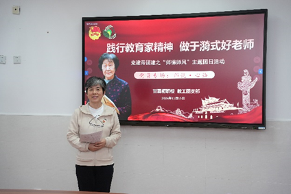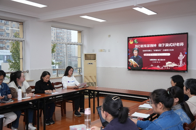 为深入贯彻落实习近平总书记关于教育工作的重要指示精神,积极响应加快建设教育强国、大力弘扬教育家精神的号召,近日,在学校党支部的引领下,甘霖教工团支部以“师德师风”主题团日活动为契机,以“践行教育家精神 做于漪式好老师”为主题,开展了首场主题论坛活动。本次活动由教工团支部书记吴婷婷主持,党支部书记高薇华、部分党员教师、全体团员教师及35周岁以下青年教师出席活动。