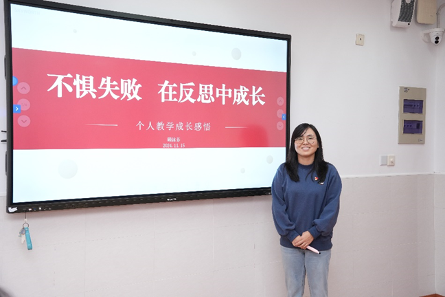 党员青年顾泳芬老师,以《不惧失败,在反思中成长》为题,回顾了自己进校以来参加多次教学比赛的心路历程。顾老师坦诚地分享了从第五届校教学节到第五届普陀杯教学比赛,从一开始备课“胸中有书”,到“目中有人”,再到如今“手中有活”,在一次次的备课、磨课、教学比赛中不断成长和反思,最终“教到学生心里”。她的故事激励着每一位青年教师,勇于实践、不断前行,将每一次失败转化为前进的阶梯,不断提升自我,追求卓越,努力提升教学水平和专业素养,用自己的实际行动践行“一辈子做教师,一辈子学做教师”的崇高信念。