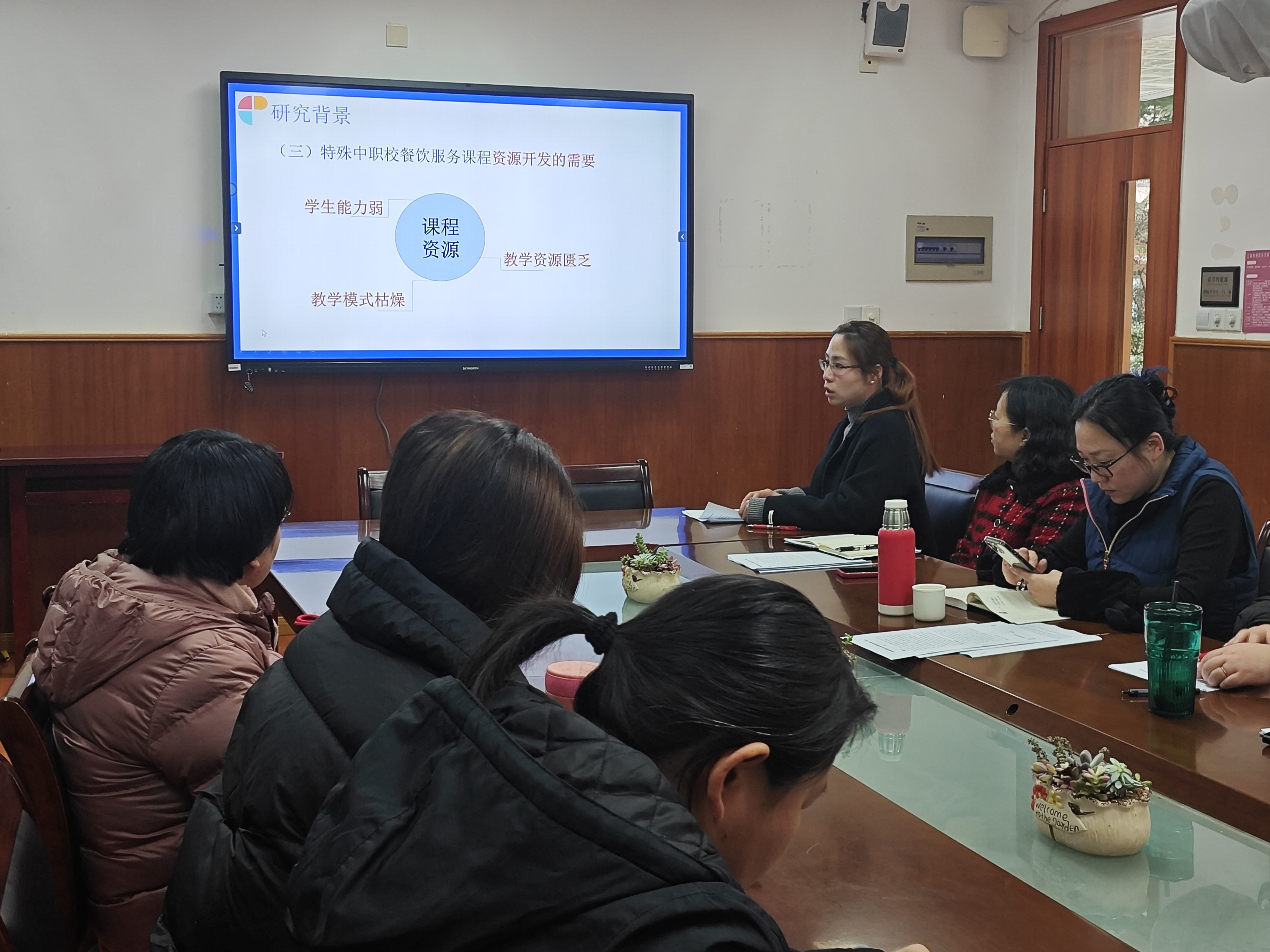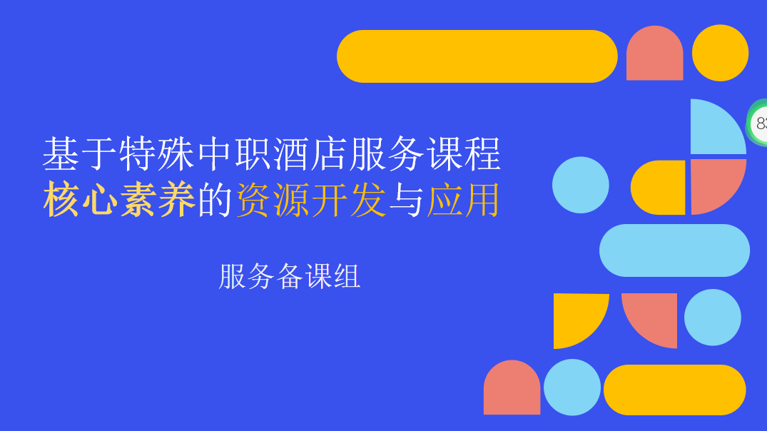 服务备课组组长唐文婷对服务组的小专题研究《基于特殊中职酒店服务课程核心素养的资源开发与应用》进行了中期汇报。着重介绍了在教学资源开发、课堂教学实践方面展开的研究,促进酒店服务学科教学质量的提升。